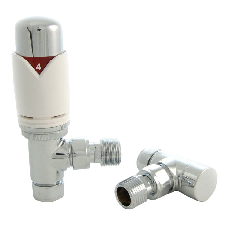 These allow you to join the central heating pipework to the radiator at an angle. The radiator valve has a 90° bend in it so that the valve inlet can be joined in either a horizontal or vertical position. The pipe work comes from the wall. The benefit of using Corner valves when pipe work is coming from the wall is that the radiator head will be pointing inwards and will not increase the overall depth of your radiator.